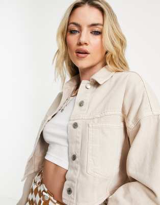 Topshop cropped denim jacket in sand | ASOS