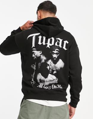 Pull\u0026Bear – Kapuzenpullover in Schwarz mit \u003cem\u003eTupac\u003c/em\u003e-Print | ASOS