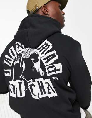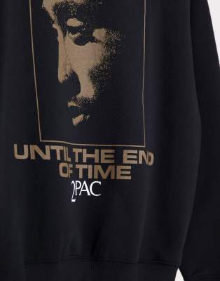 Pull\u0026Bear - Tupac - Felpa nera con cappuccio e stampa | ASOS