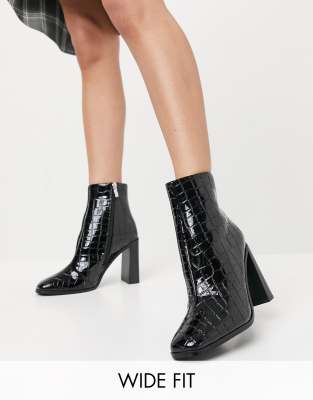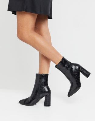 Croc Flare Heeled Ankle Boots | Nasty Gal