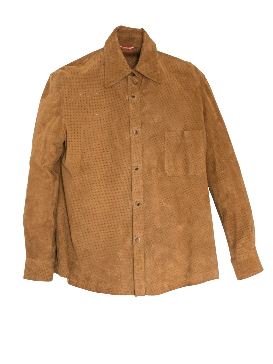 Clothcraft Wildleder-Hemd Bluse Damen Gr. 42 Cognac perforiert