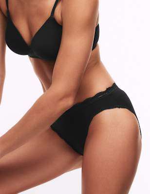 3pk Cotton \u0026 Lace High Leg Knickers | M